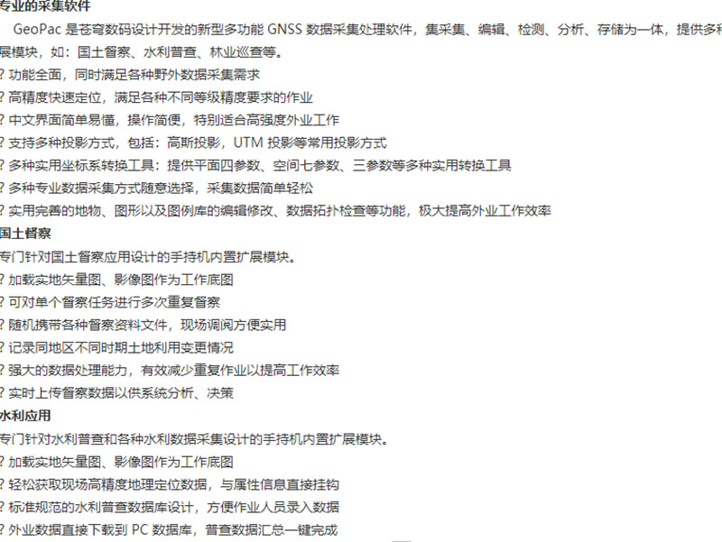 GeoRef V2系列是高性能的专业GIS数据采集器,采用自主知识产权的高精度差分增强算法,支持大数据量影像数据加载及百兆级矢量数据加载,具备事后差分增强功能,并整合主流高端系统硬件配置,为您的应用提供更高的精度、速度和稳定性,可满足复杂环境、多样化的使用需求。GeoRef V2系列提供全面的GNSS/GIS软件应用解决方案,兼容目前各种主流的GIS平台特别是苍穹GIS平台软件。同时,还可为您定制各种特殊要求的行业应用功能,满足您的个性化使用需求。