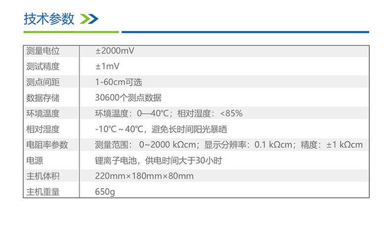 ①集锈蚀仪和电阻率于一体,操作简便,测量结果以数字的形式显示,直观便捷;